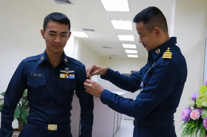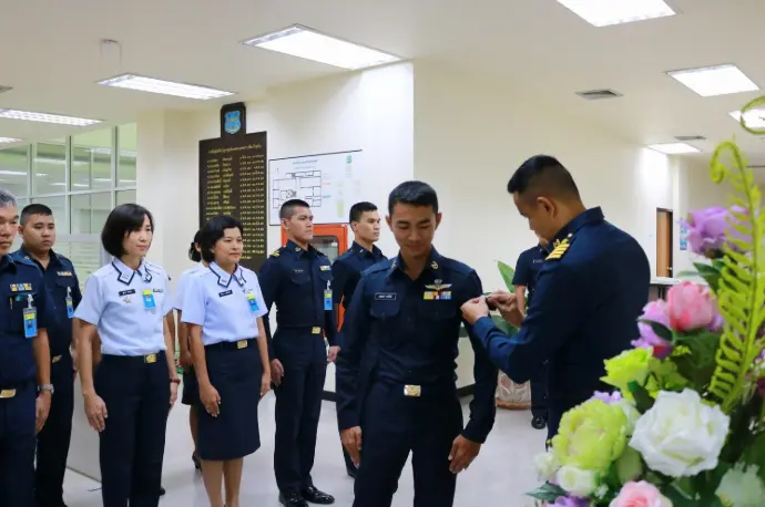 น.อ.ชัยวัฒน์ แจ่มดวง ผอ.ศทบ.ยศ.ทอ.เป็นประธานในพิธีประดับเครื่องหมายยศนายทหารชั้นประทวน