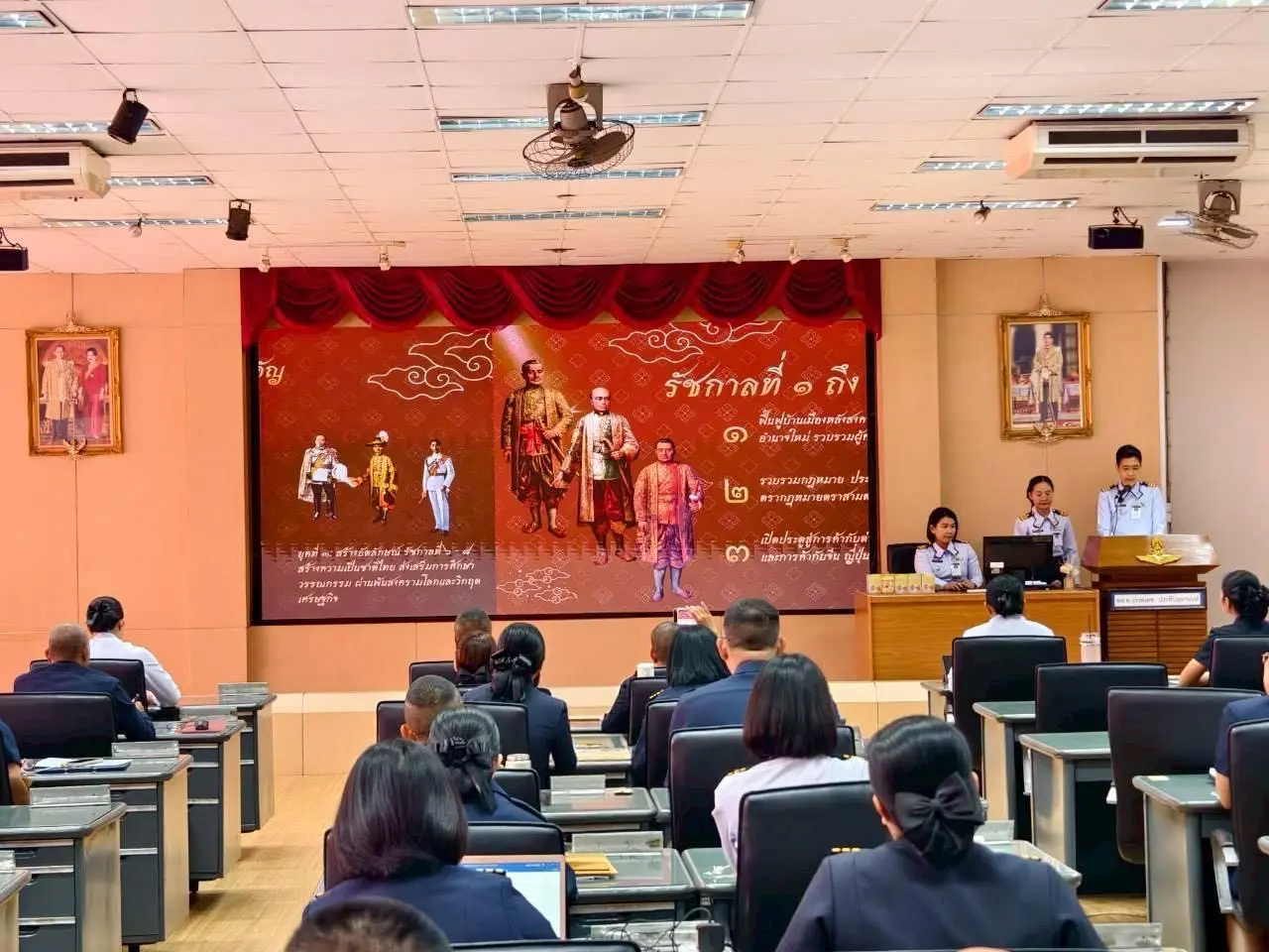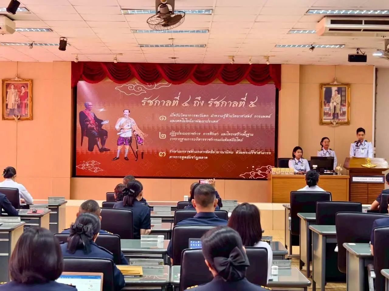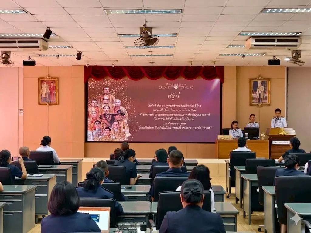 โรงเรียนนายทหารอากาศอาวุโส จัดกิจกรรมนำเสนอ “น้อมรำลึกถึงพระมหากรุณาธิคุณสถาบันพระมหากษัตริย์เนื่องในวันจักรี” ตาม บฝ.พิเศษ ๕/๑ กิจกรรมการเรียนการสอนแบบ Active Learning ของนายทหารนักเรียนหลักสูตรนายทหารอากาศอาวุโส รุ่นที่ ๘๔ เมื่อศุกร์ที่ ๓ เมษายน ๒๕๖๙ ณ ห้องบรรยายเมนะรุจิ โรงเรียนนายทหารอากาศอาวุโส กรมยุทธศึกษาทหารอากาศ