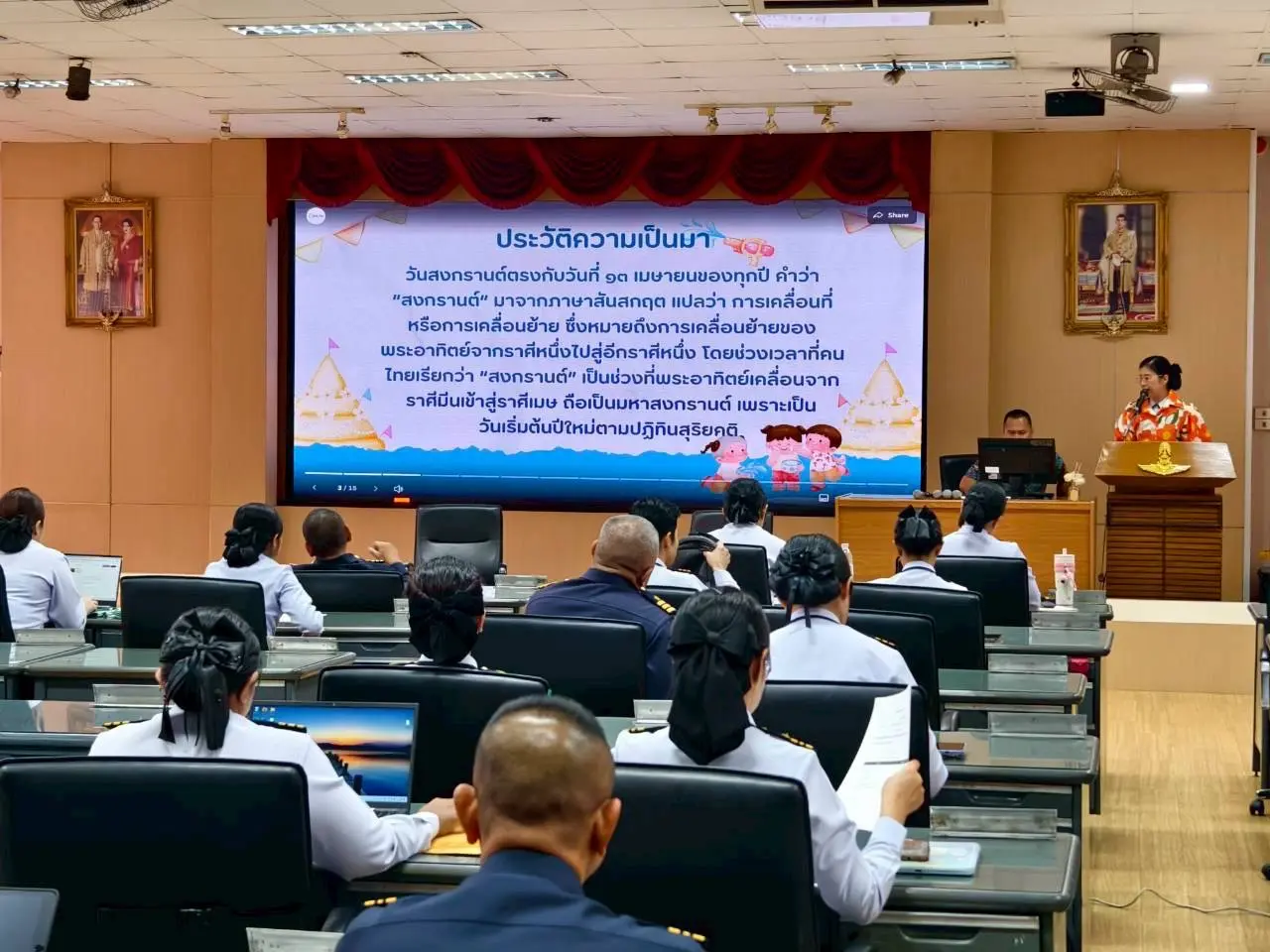 โรงเรียนนายทหารอากาศอาวุโส จัดกิจกรรมนำเสนอ “ส่งเสริมความรู้พื้นฐาน เนื่องในวันสงกรานต์ ประจำปี ๒๕๖๙” ตาม บฝ.พิเศษ ๕/๑ กิจกรรมการเรียนการสอนแบบ Active Learning ของนายทหารนักเรียนหลักสูตรนายทหารอากาศอาวุโส รุ่นที่ ๘๔ เมื่อวันศุกร์ที่ ๙ เมษายน ๒๕๖๙ ณ ห้องบรรยายเมนะรุจิ โรงเรียนนายทหารอากาศอาวุโส กรมยุทธศึกษาทหารอากาศ