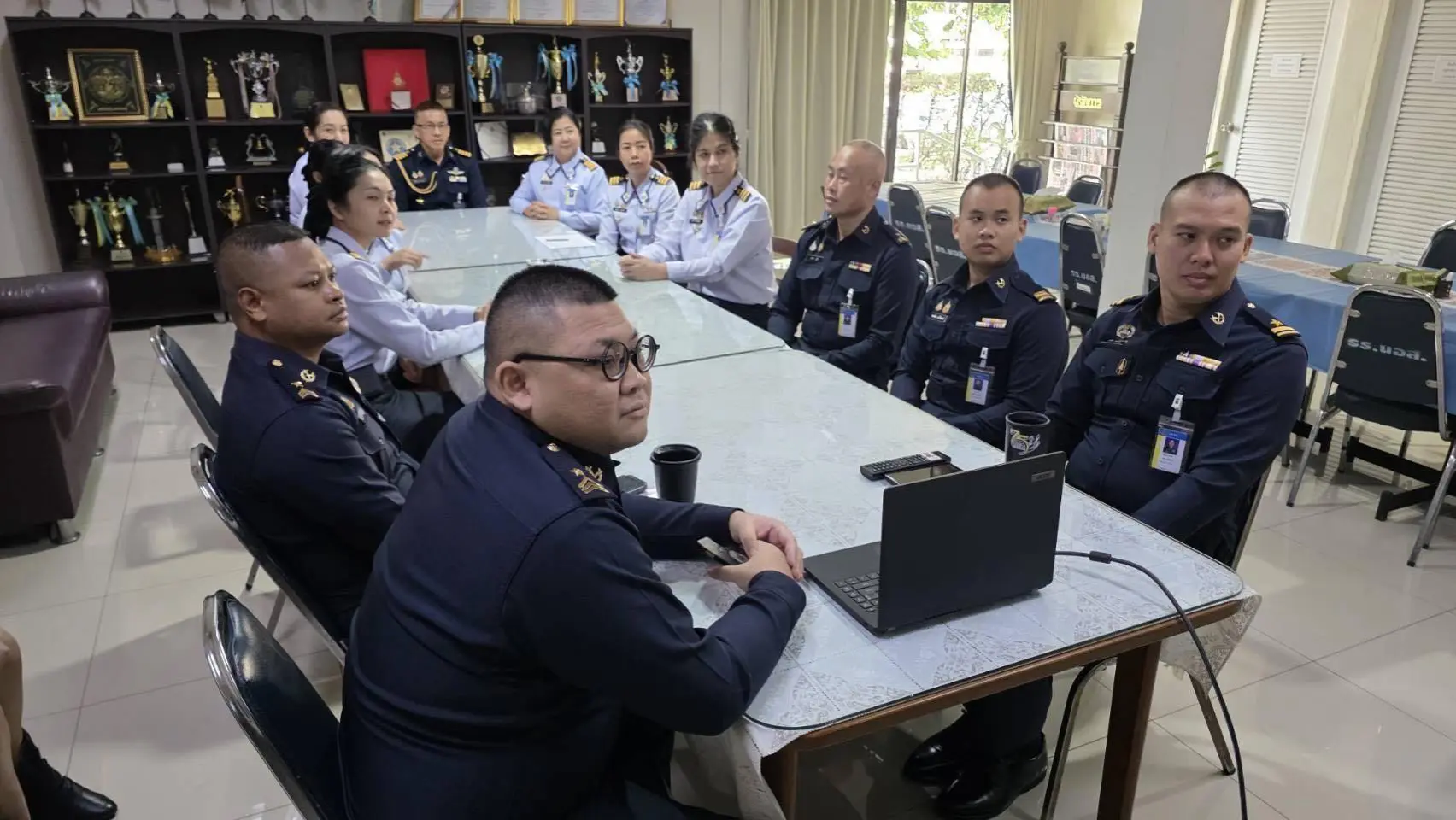 ข้าราชการ และพนักงานราชการ โรงเรียนนายทหารอากาศอาวุโส กรมยุทธศึกษาทหารอากาศ ร่วมรับฟังสาร ผู้บัญชาการทหารอากาศ เนื่องในวันกองทัพอากาศ ประจำปี ๒๕๖๙ ผ่านการกระจายสัญญาณถ่ายทอดสดทาง IPTV ณ ห้องพักผ่อน รร.นอส.ยศ.ทอ. เมื่อวันพฤหัสบดีที่ ๙ เมษายน ๒๕๖๙