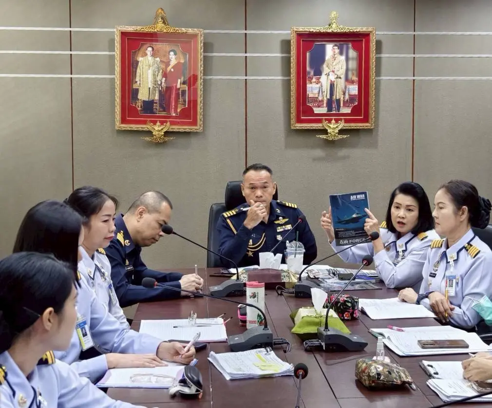 นาวาอากาศเอก ณฐพงศ์ ตาละลักษมณ์ ผู้อำนวยการโรงเรียนนายทหารอากาศอาวุโส กรมยุทธศึกษาทหารอากาศ เป็นประธานในการประชุมเตรียมงานคณะทำงานด้านประชาสัมพันธ์และพิธีการ DET SYMPOSIUM 2026 โดยมีวัตถุประสงค์เพื่อวางแผนการดำเนินงานและรับทราบหน้าที่รับผิดชอบ ซึ่งคณะทำงานประชาสัมพันธ์และพิธีการ มีหน้าที่ วางแผน ดำเนินการประชาสัมพันธ์ บันทึกภาพ และสื่อสารข้อมูลการจัดงานแก่สาธารณชน ผู้สนใจ ให้เข้าร่วมงาน ตลอดจนการบันทึกภาพระหว่างจัดกิจกรรมฯ และนำภาพกิจกรรมไปประชาสัมพันธ์ในช่องทางต่าง ๆ รวมถึง งานพิธีการ และการต้อนรับผู้รวมงาน เมื่อวันจันทร์ที่ ๙ กุมภาพันธ์ ๒๕๖๙ ณ ห้องประชุมนภาภิวุฒิ โรงเรียนนายทหารอากาศอาวุโส กรมยุทธศึกษาทหารอากาศ