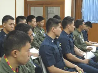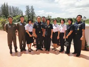 น.อ.อาทิตย์ อู่วิเชียร รอง ผบ.กฝบ.รร.การบิน ให้การต้อนรับ น.อ.น้อย ภาคเพิ่ม ผอ.ศทบ.ยศ.ทอ.และคณะ เพื่อติดตามผลการทดสอบความถนัด